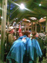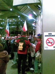 | My Friday night train was quite different to what I expected. On Friday 11th July I came home from my holiday in Warrnambool, after the long Vline trip back I arrived at Southern Cross station at 9pm only to find myself in a massive swarm of people. You see I had chosen to travel back home on the same day as the World Youth Day rally at the Telstra Dome (which is next to southern cross) before heading up to Sydney. There were people from everywhere. I struggled to get onto platform 10 to get my train Connex workers was franticly trying to move people but with little luck. I found myself surrounded by a group from Chile and they sang patriotic chants that could burst the eardrum (ok I exaggerate a bit it wasn't that loud). I finally got my train and was in a carriage full of Indians baring their flags, and singing with joy. Probably the safest and most entertain train trip home ever. The began with praise songs (Shine Jesus Shine, Lord I lift your name on high, and more)and got people in the carriage to sing along and then after a while at the request of someone (I have no idea why) they began to sing Christmas carols. Very Funny. |