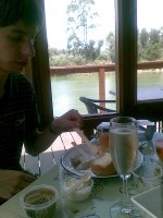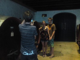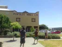 The next day was the wedding, needless to say we didn't want to waste time so before the wedding we made our way to Semaphore to check it out then to the seahorse (hippocampus) farm in Port Adelaide. The seahorses were pretty cool but the best thing was patting a shark! Ok so it was only a dog shark but touching a shark none the less is still cool. We didn't leave much time between leaving Port Adelaide and the Wedding so we had a frantic dash to get changed in the car from beach wear to wedding formality. By the third day we were pretty tuckered out and the heat was a killer that we wasted most of the day in the swimming pool on the hotel roof. By five o'clock we decided to adventure out and we sought out the local cinema, which just happened to be the biggest screen in South Australia, we saw Sherlock Holmes. One unusual thing about this cinema was that it was licensed so they had beer and nibbles combos. Which brings me to the fourth day- Barossa Valley. With the aid of Kirk and Jess we enjoyed a day trip along the Barossa Valley highway. The first stop was Penfolds, which offered the best wines of the day. After this we dined at Maggie Beer's farm shop (of 'The Cook and The Chef') which included lots of tastings and a sneek peek into the studio where the show is filmed. We even managed to get a glimpse of Maggie while we ate our ploughman style lunch. These were both in Nuriootpa. From here we moved on to Angaston were Saltram wine estate was a bit of a let down but the Barossa Valley cheese company made up for it with its smelly cheese. Down the road a bit was Tanunda were we enjoyed some home made ice-cream the specialty was a wine flavour. Our last stop much to the relief of Kirk was the Jacob's Creek visitor centre. After another hot day we all took a dip in the pool.